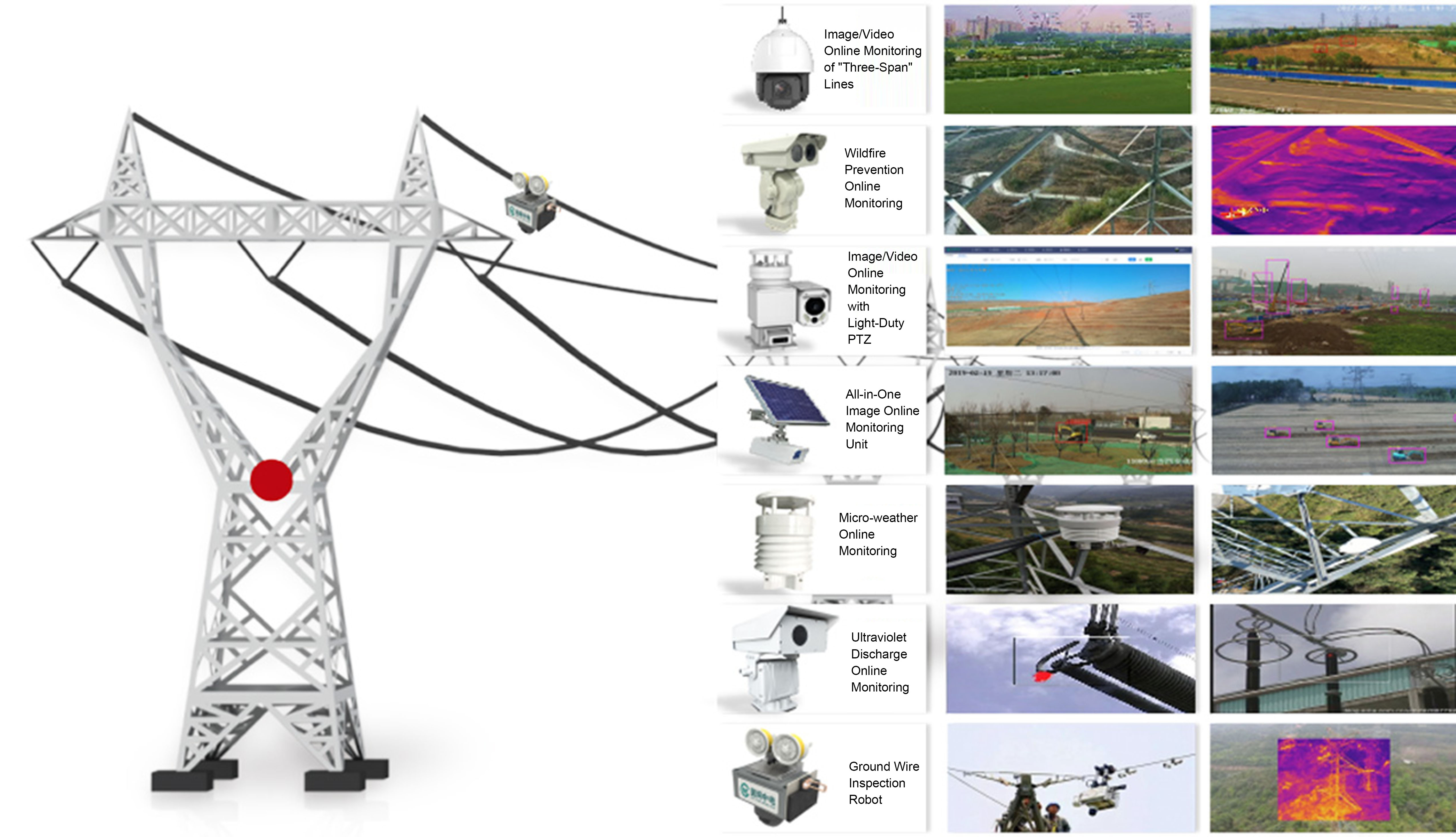 The integrated online monitoring system for transmission lines, in accordance with the State Grid's "three types and two networks" construction requirements, achieves multi-dimensional and precise perception of transmission line operation status through four types of equipment state sensing methods: equipment body monitoring, channel monitoring, intelligent inspection, and mobile operation. It continuously constructs an online monitoring system with panoramic equipment status and intelligent data analysis, providing safety guarantees for the reliable operation of power grid lines.