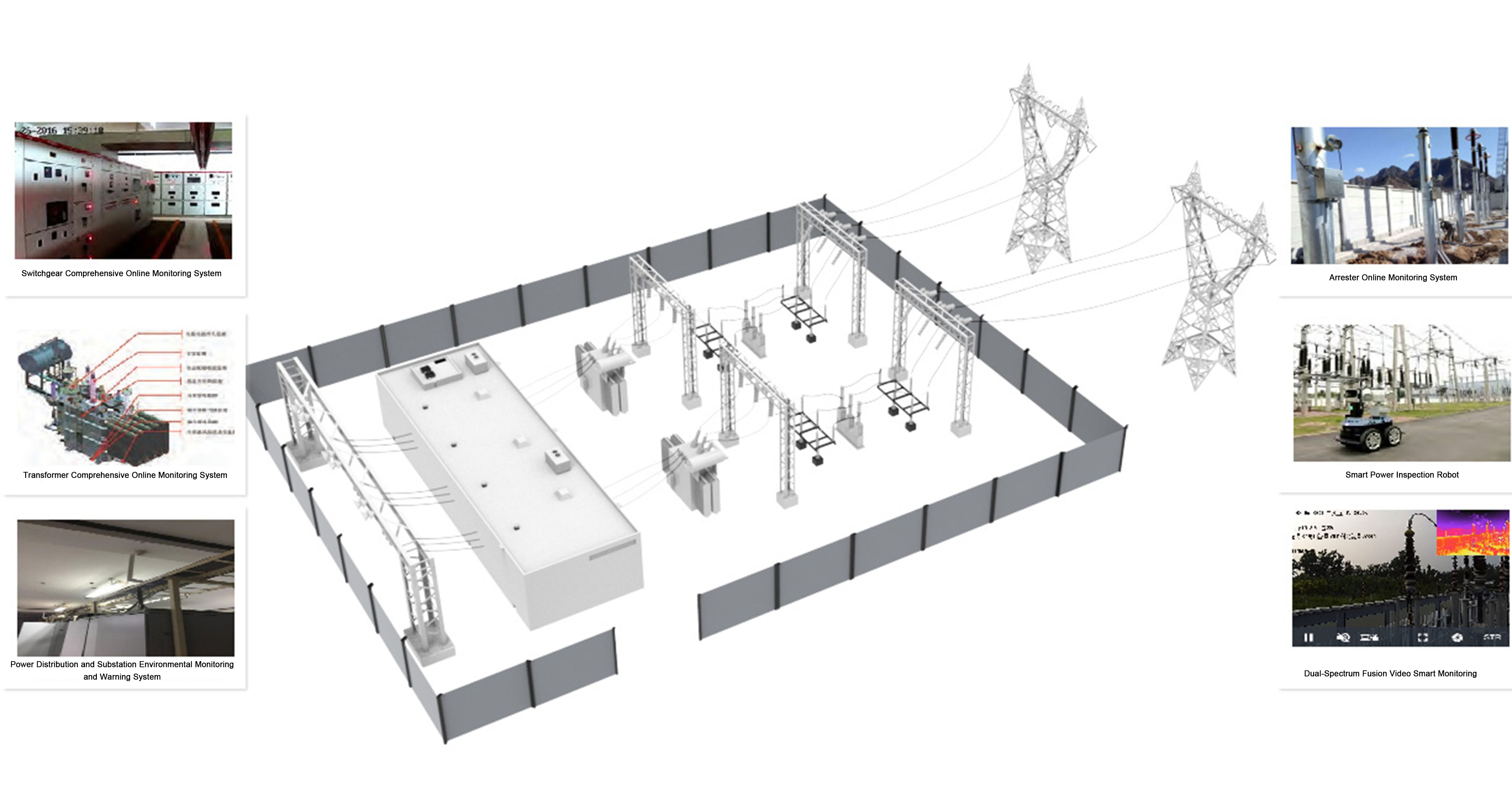 The power distribution and transformation monitoring system evaluates the status and remaining lifespan of electrical equipment using a comprehensive assessment model based on multi-information fusion technology. It considers structural characteristics, operational history, and environmental factors to analyze existing or potential faults, determining their nature, type, severity, and causes. It predicts trends and consequences and proposes effective countermeasures to prevent accidents, ensuring safe, reliable, and normal operation of the equipment.