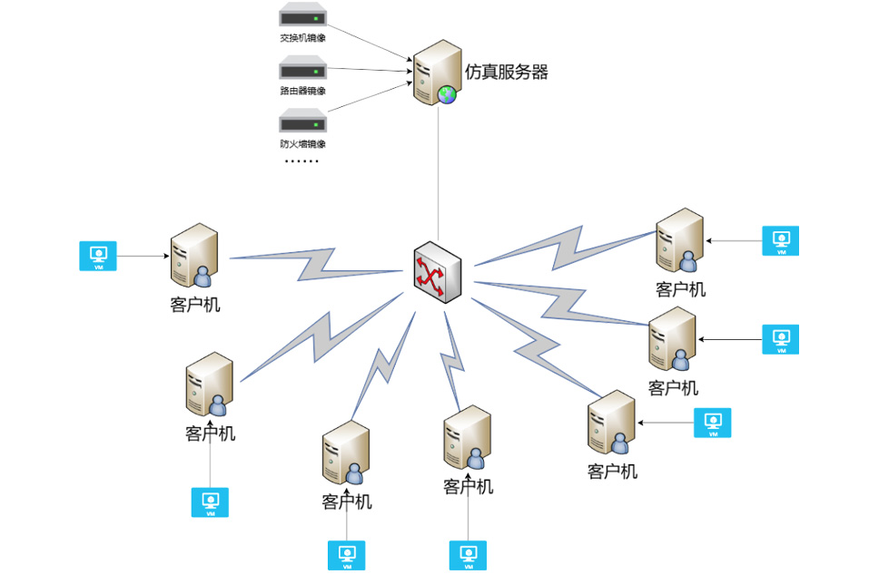 客户机可进行本地设备的仿真,采用集群部署,分担服务器的算力压力,提供网络全景视图的可视化操作。